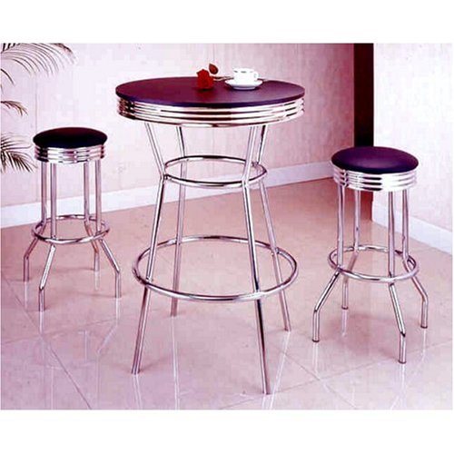 Step back in time with this "Fifties Memories" Collection of Practical and unpretentious beautiful pieces of furniture that would be perfect for you home decor a diner, bar and restaurant alike. It comes with beautiful Bar stools that fit to your Bar table with a chrome-metal frame and padded seating made for easy use and easy cleaning. Make this piece yours today to decorate the beauty of your home or get it as a gift for someone. These items are made of quality and structure and due to the nature of shipping, the shipping charged is for the packaging, handling, and freight cost so that we can ensure that your package arrives to you at the least risk of damage as possible.