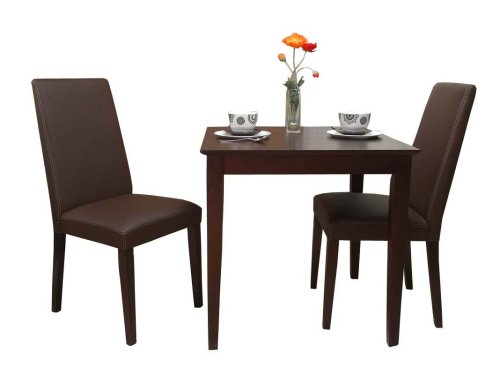 For a more intimate set add this sophisticated Cafe Dining set to any room & it says "class". It is available in an elegant espresso finish with the table measuring 29.5 inches long by 29.5 inches wide by 29.5 inches high. To complete this set, the Parsons chair measures 17.5 inches wide by 16 inches deep by 37.75 inches high, has a rich brown vinyl upholstery for easy care & has a subtle white stitching, giving it a clean line finish. Requires some assembly.