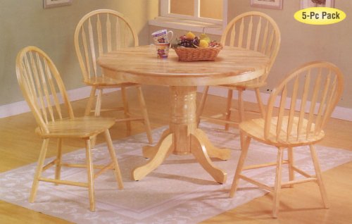 Practical and yet beautiful construction of this Natural Finish dining Table and Arrow Back Windsor Chair. Made with Solid wood construction, four corners of the world Pedestal, and Arrow back designed chairs, are wonderful features of this 5-pc Collection.Make this piece yours today to decorate the beauty of your home or get it as a gift for someone. These items are made of quality and structure and due to the nature of shipping, the shipping charged is for the packaging, handling, and freight cost so that we can ensure that your package arrives to you at the least risk of damage as possible.