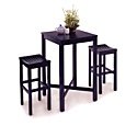 Cozy up around this adorable 3-piece Pub Set. Featuring 2 bar stools and a pub table, this set is perfet for a cozy nook in your home and is just the right size for 2 people to enjoy a drink or tea together. 3-piece Pub Set With 2 Bar Stools and Pub Table Features: Solid hardwood construction - rugged and durable Black veneer wood bar table - sleek, modern design 2 black wood bar stools feature curved seats for comfortable sitting Bar stools measure approx. 15-3/4L x 13-3/4W x 29H Pub table measures approx. 26- 3/4L x 26-3/4W x 42H Made of solid hardwood Some assembly required Clean with mild, soapy water Made in Thailand