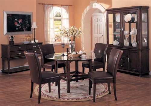 5-Pc SOHO Dining Set with Round Glass Black Chairs